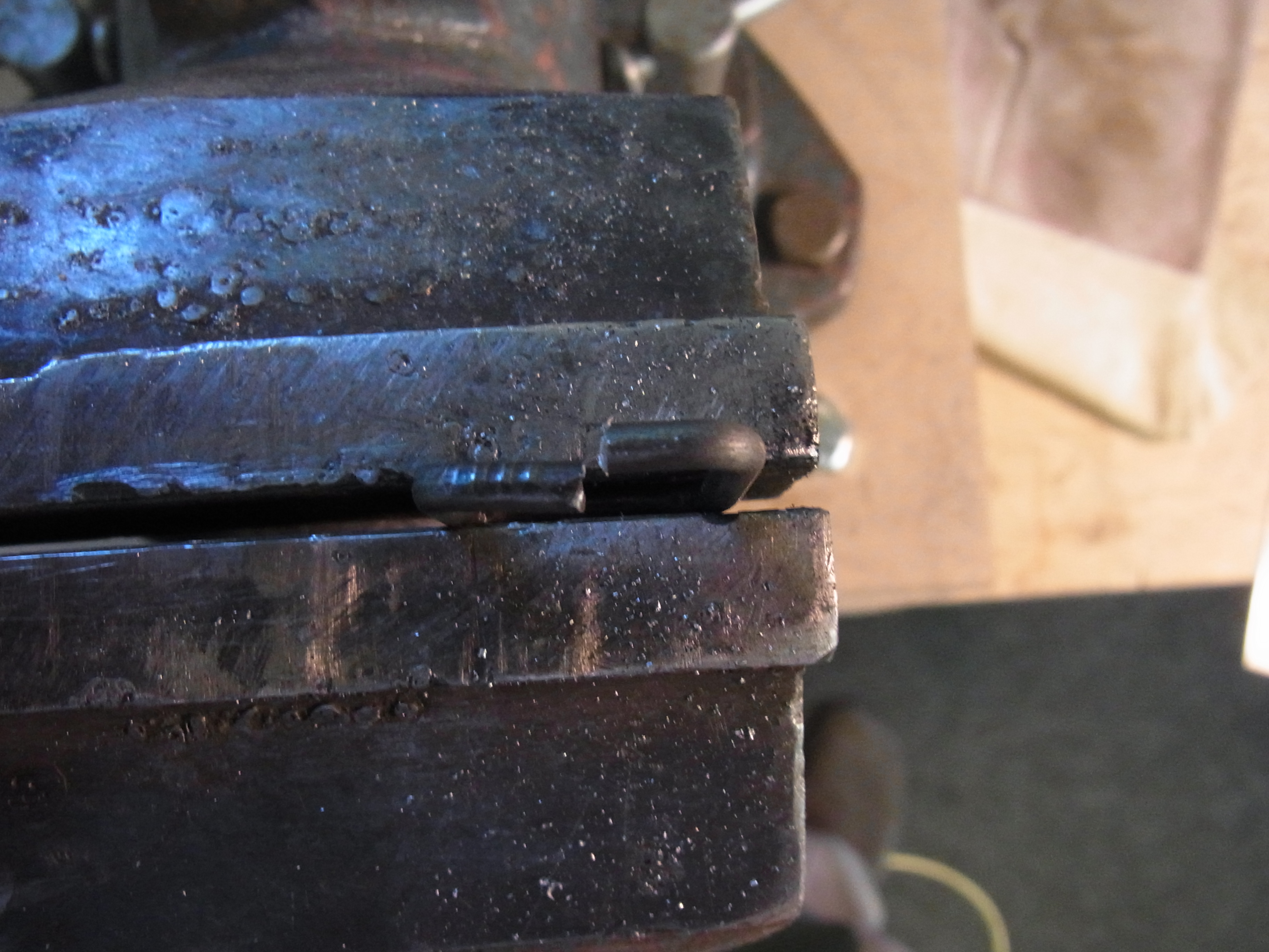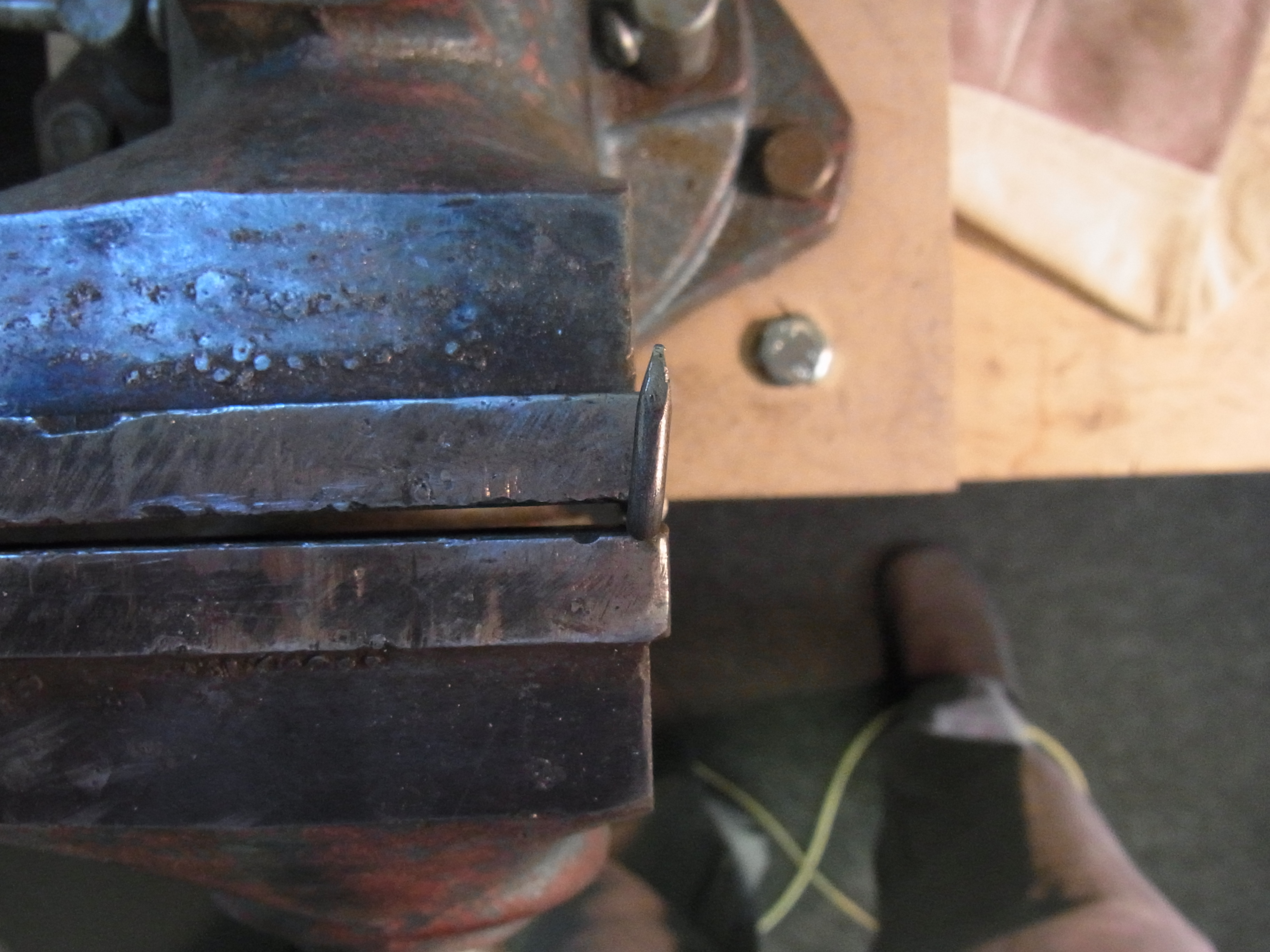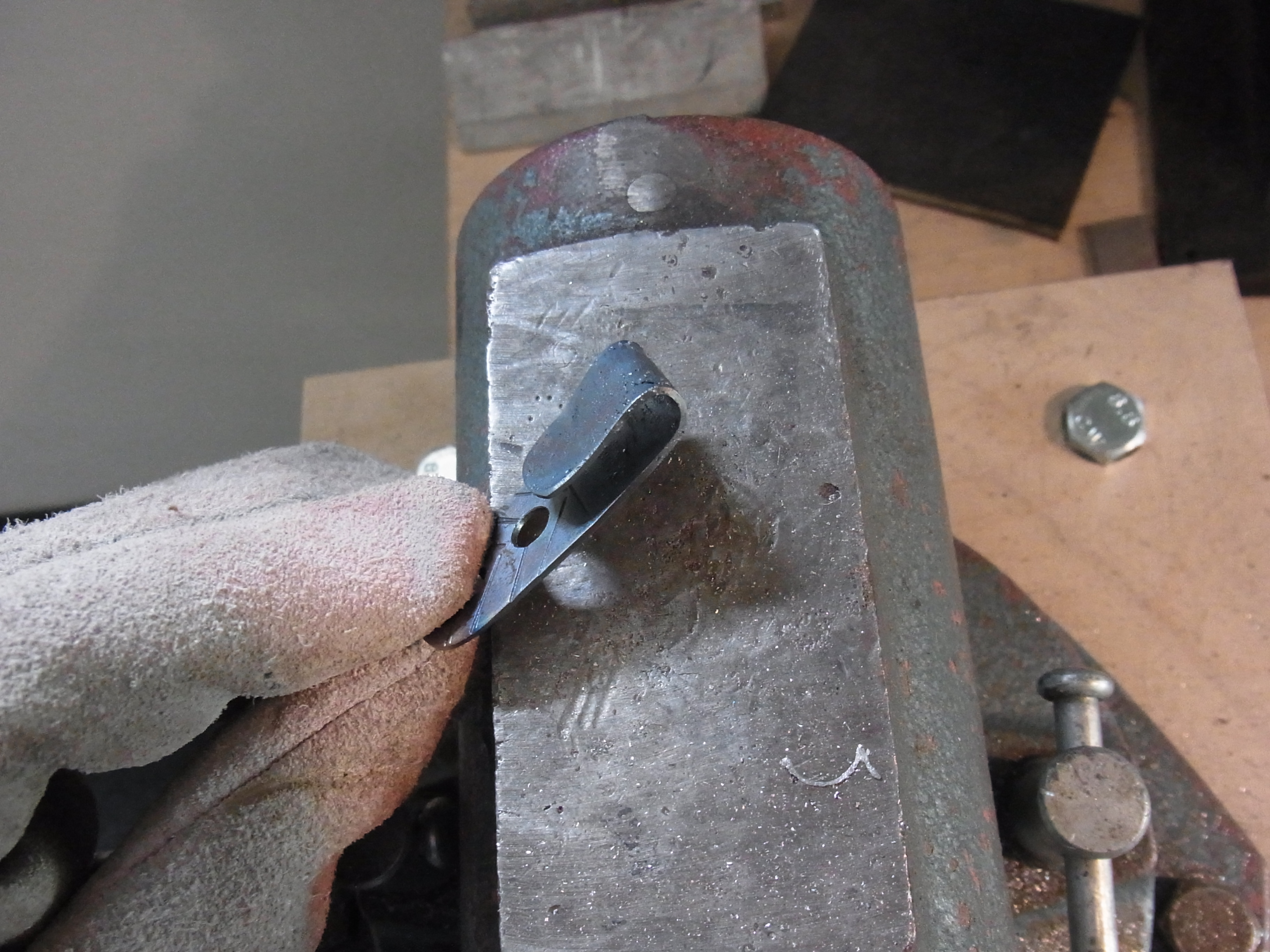 Den Haken schließe ich dann mit einem stumpfen Meißel.