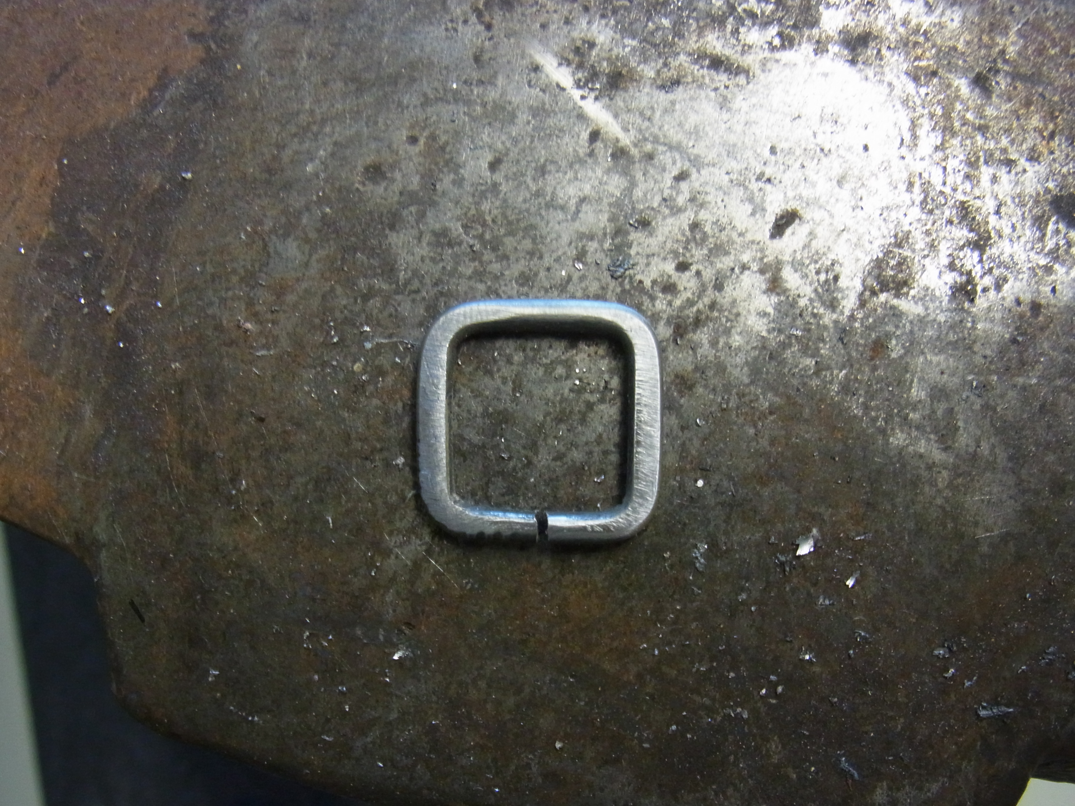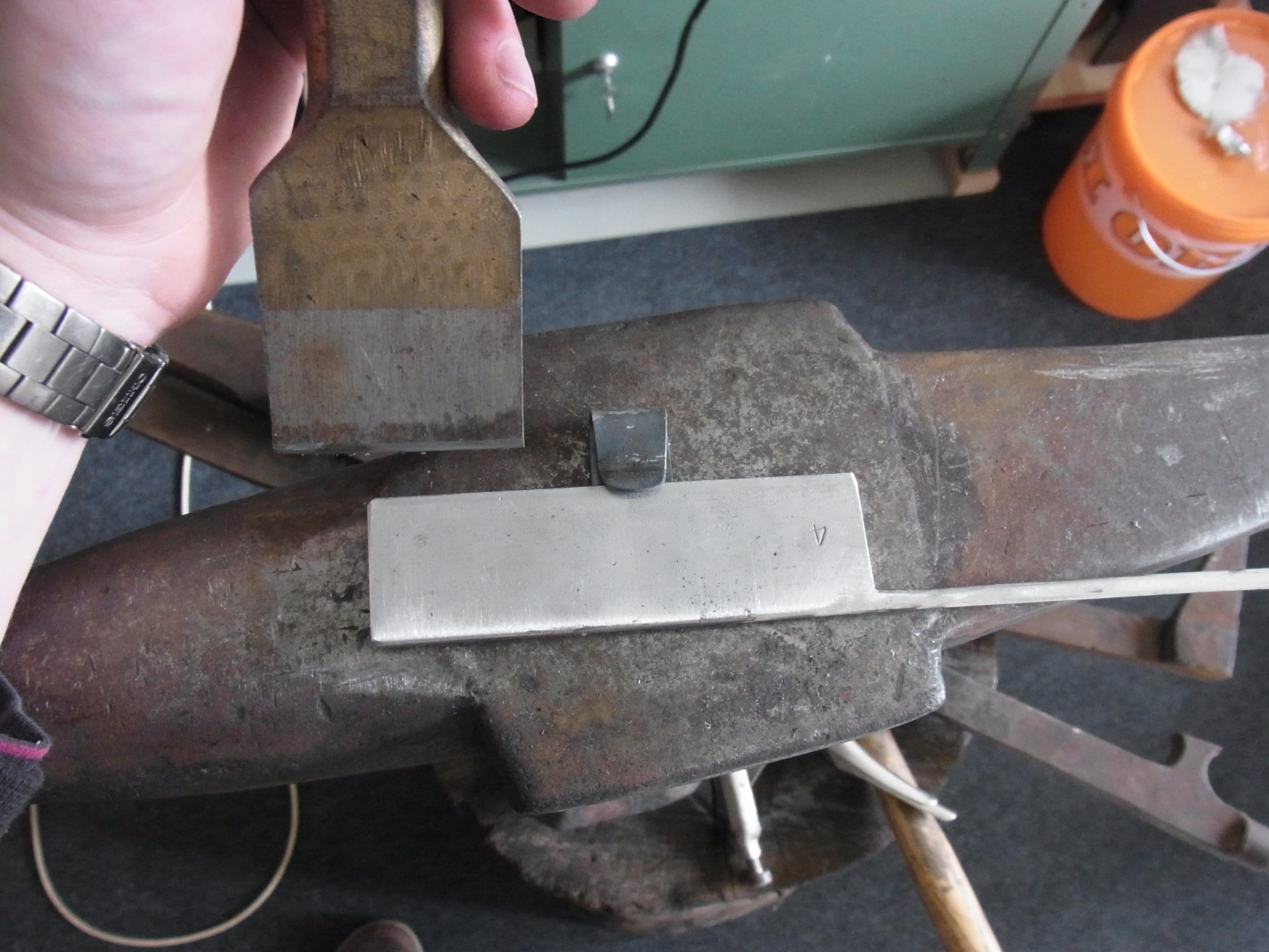 ich möchte das die Seiten abgeflacht sind. Das mache ich mit dem Schlosserhammer auf dem Amboss.