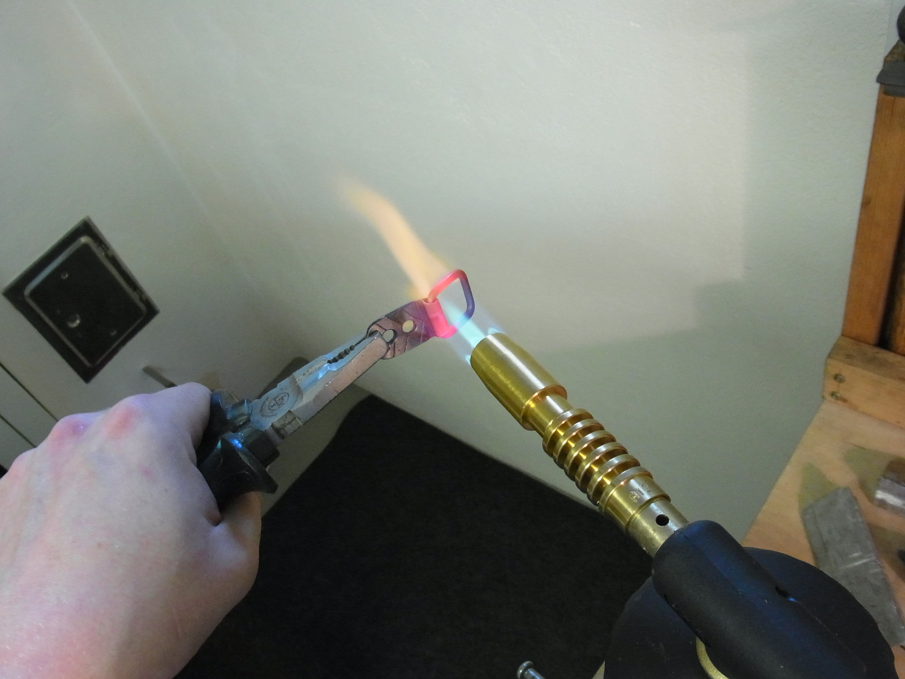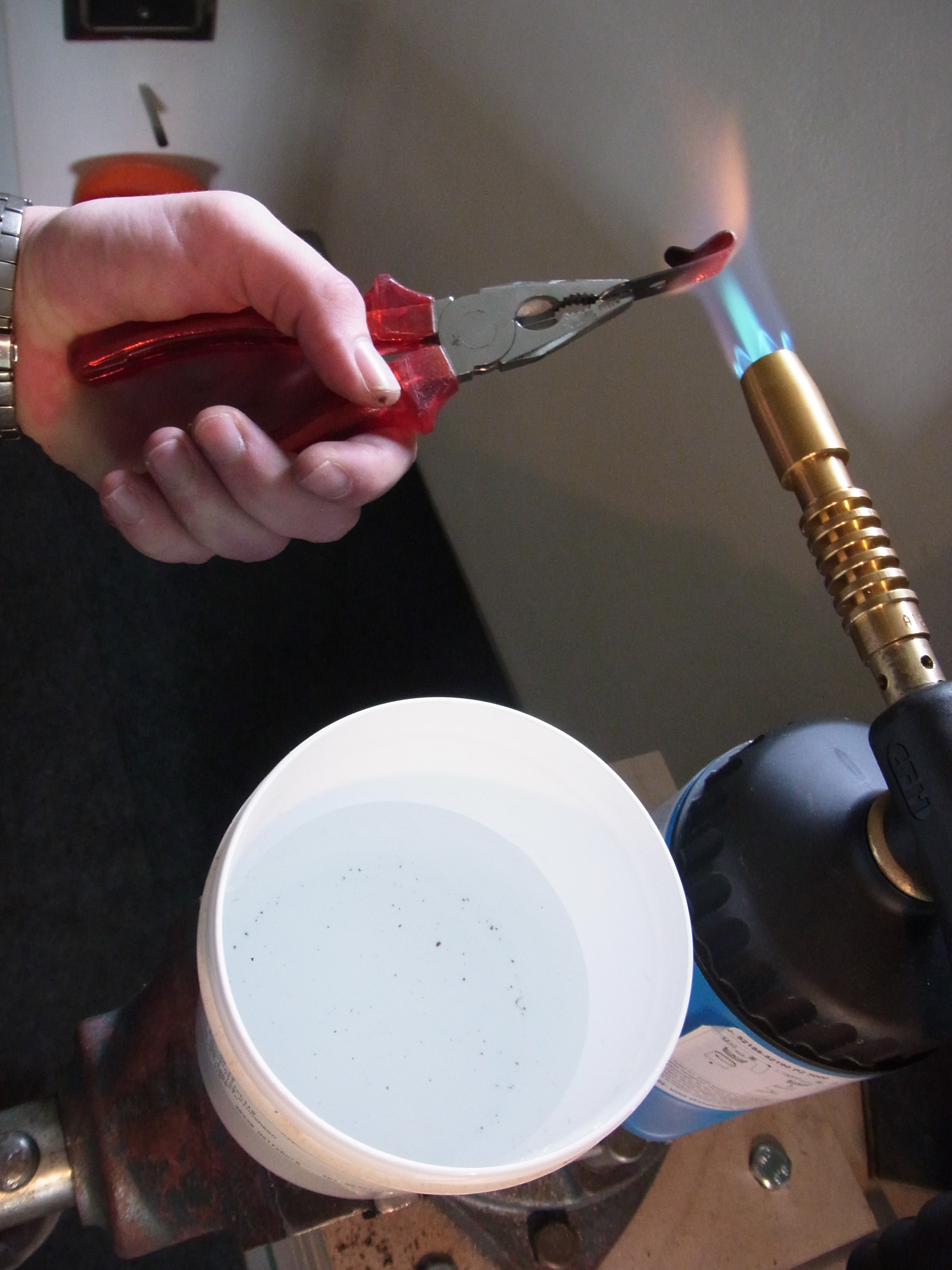 Den Haken härte ich im Wasserbad und lasse ihn bei hoher Temperatur wieder an.