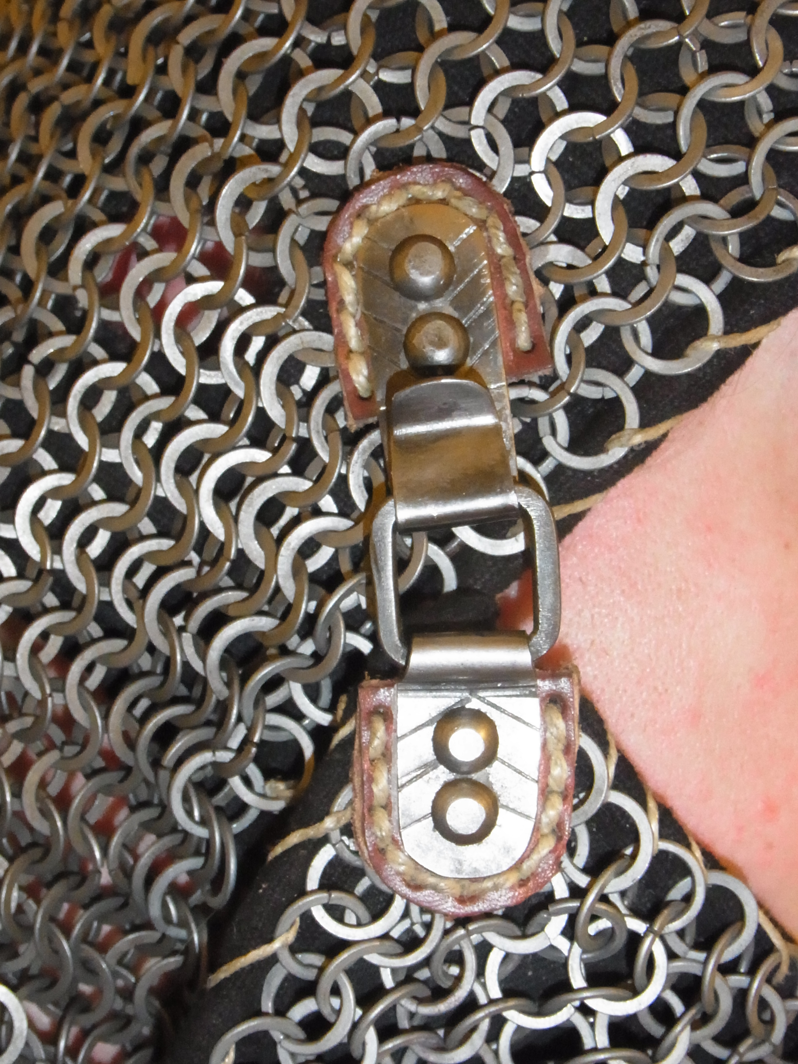Jetzt fehlt noch ein ordentlicher Verschluß. Im Reenectment sieht man oft eine Nestelbindung. Diese ist mir aber zu fummelig daher werde ich einen Haken-Öse Verschluss basteln.