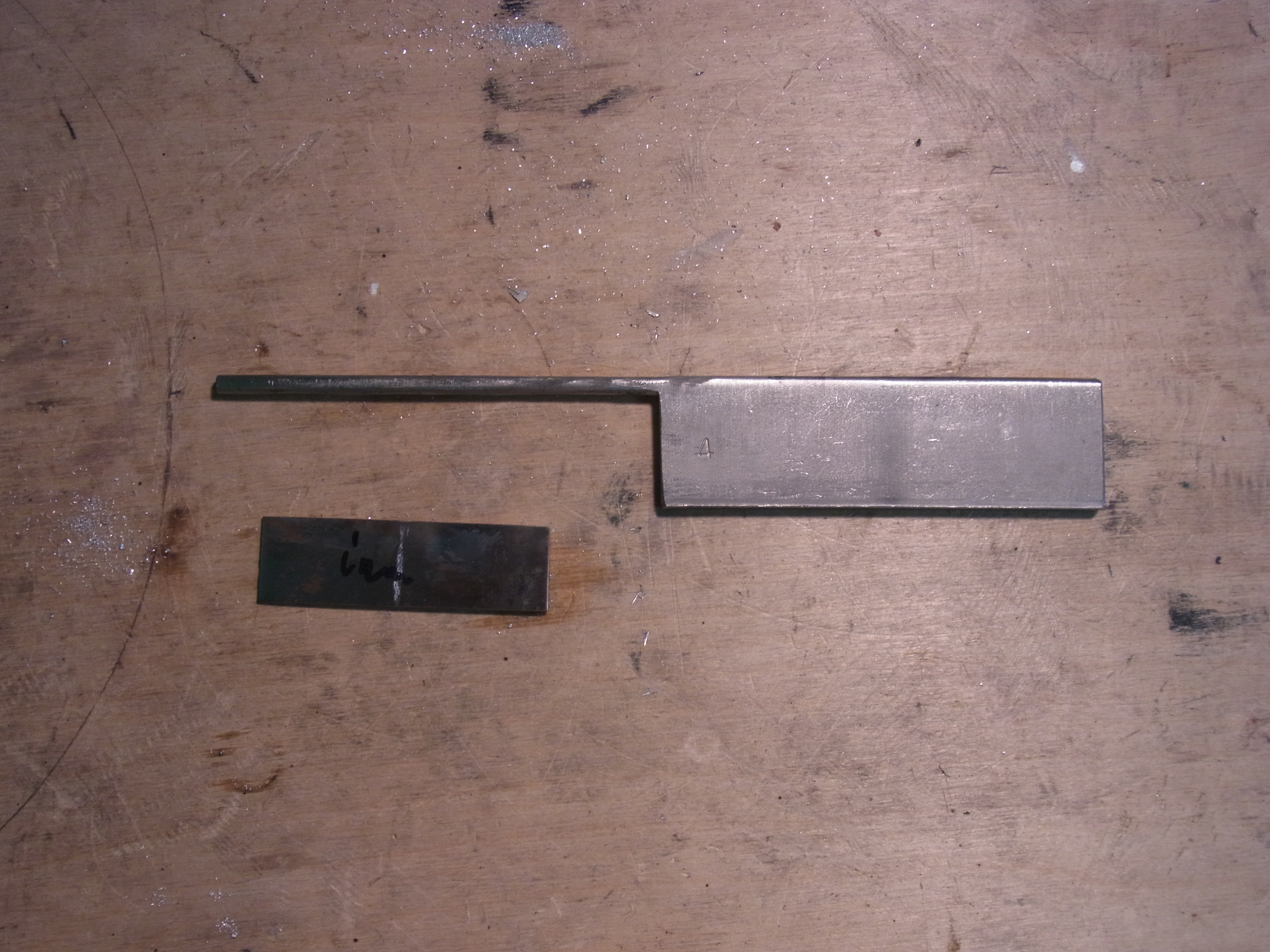 Nach dem groben Zuschneiden des 1mm Blechs mit der Hebelblechschere beginne ich die eigentliche Arbeit wieder damit das ich die Härtung aus dem Material heraus glühe.