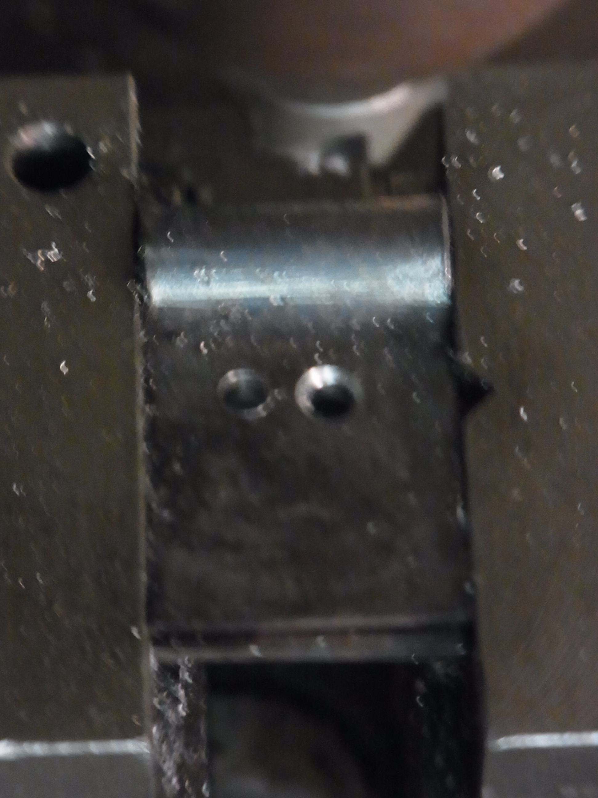 Danach werden die beiden Schenkel zusammen genietet (Senkkopfniete). Hierzu bohre ich zwei Löcher 3mm und senke sie beidseitig ordentlich an.