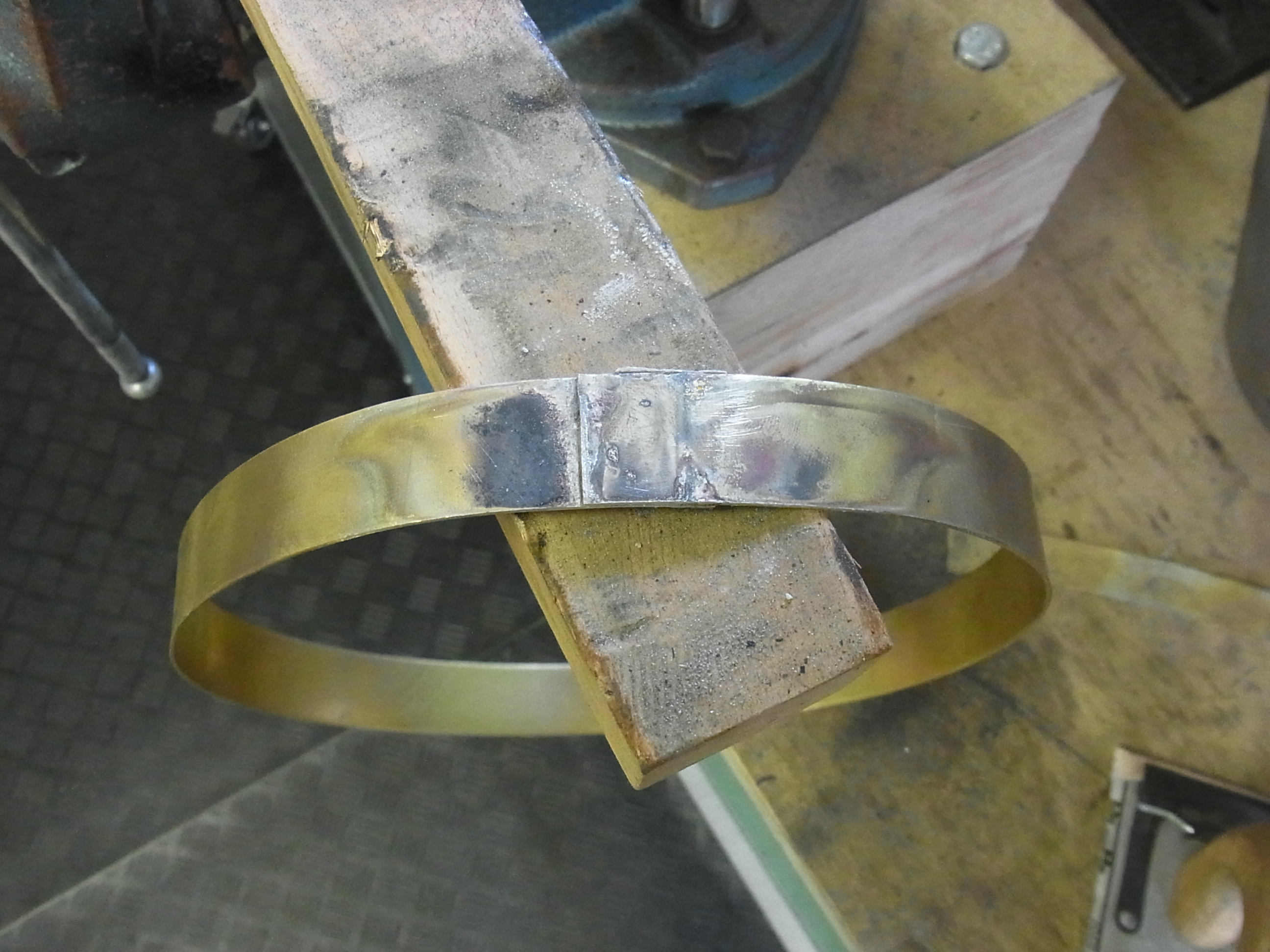 Den Ring biege ich grob in Form damit beide zu verlötenden Flächen spannungsfrei aufeinander liegen