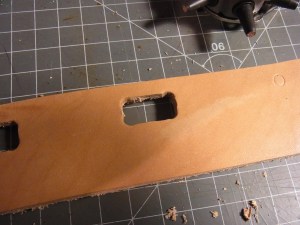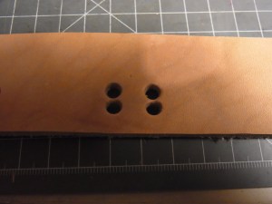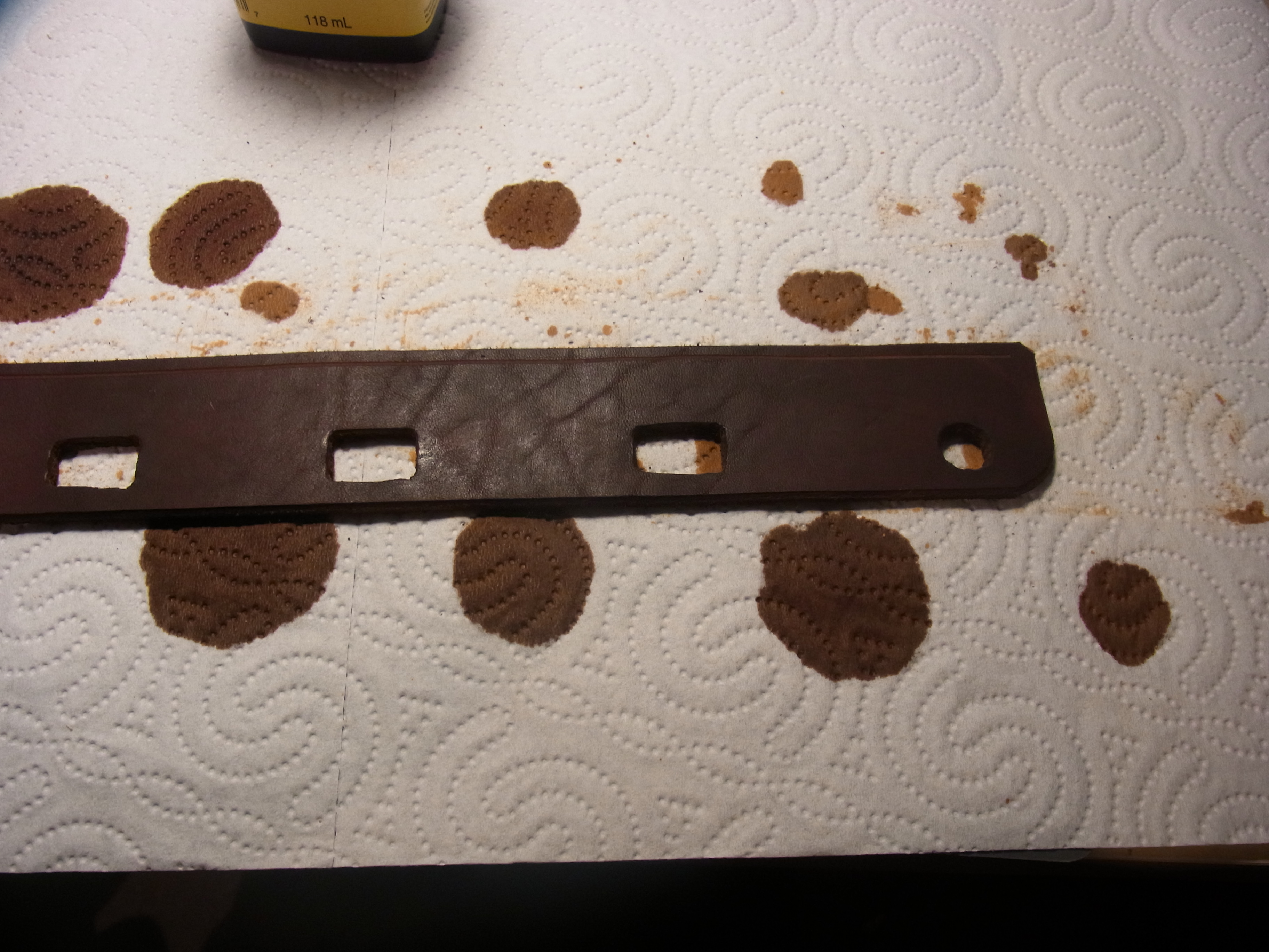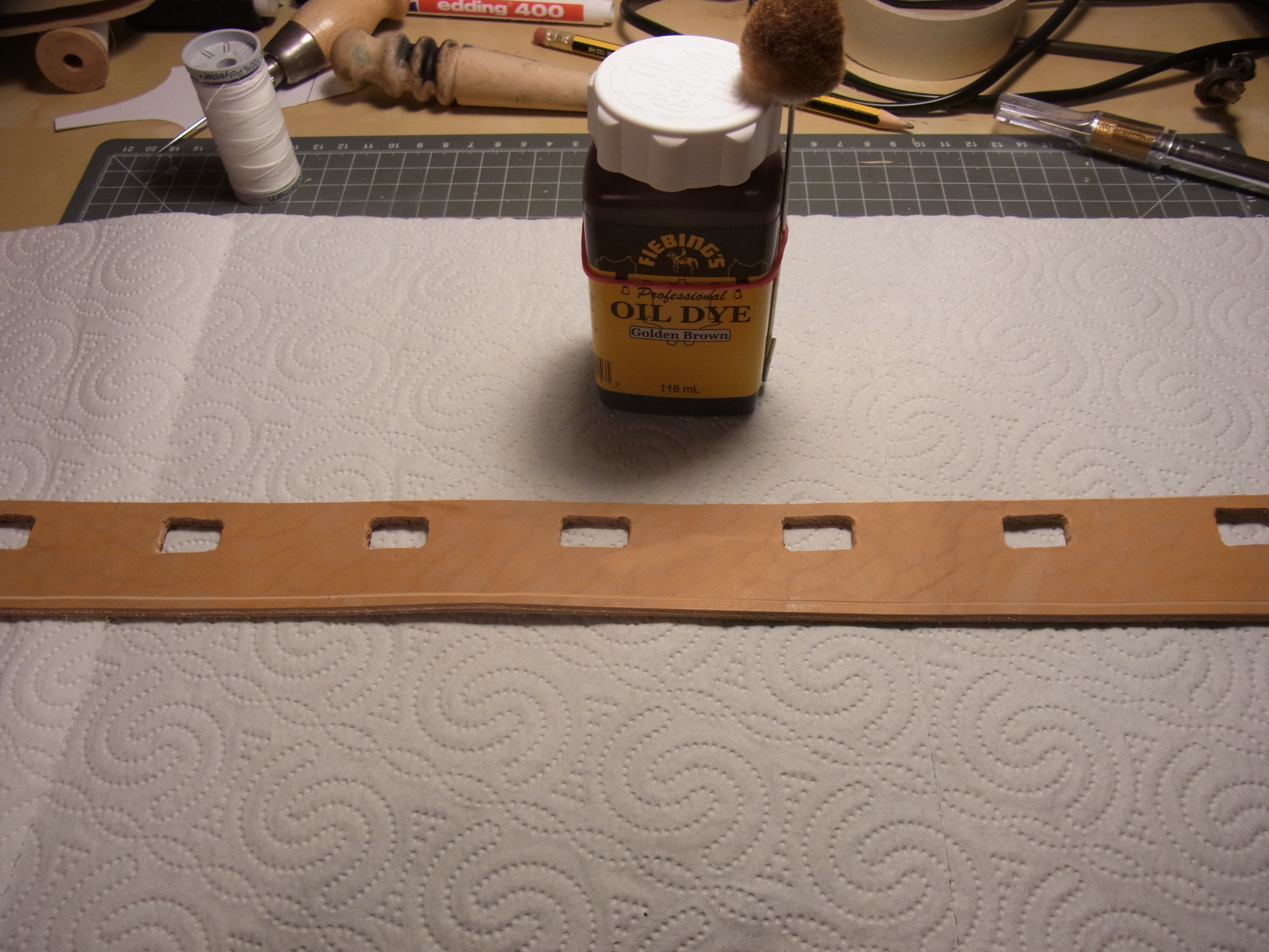 I start with the aventail-band that will be put on the eyelets. The band will be made from 4mm leather.