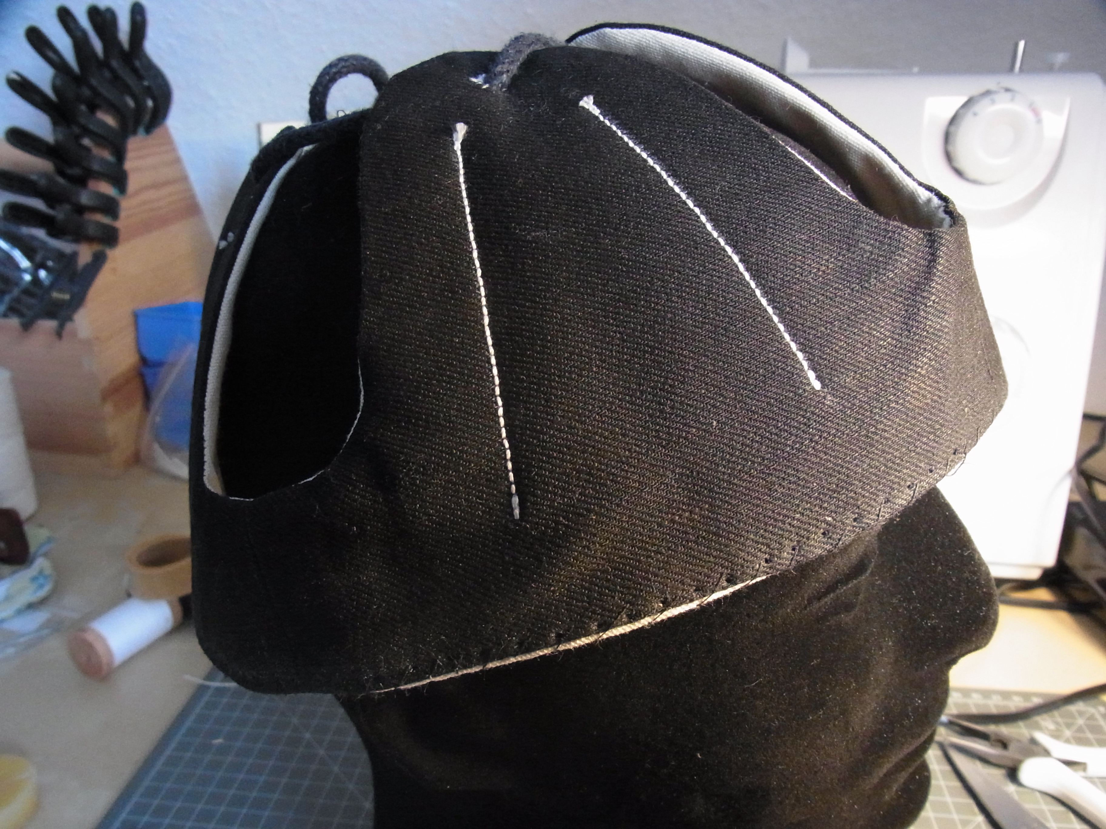I have done the lining from 4 layers of linen (each one inner/outer layer and to layers for padding). The four wings of the padding are held together at the top with an arming point.