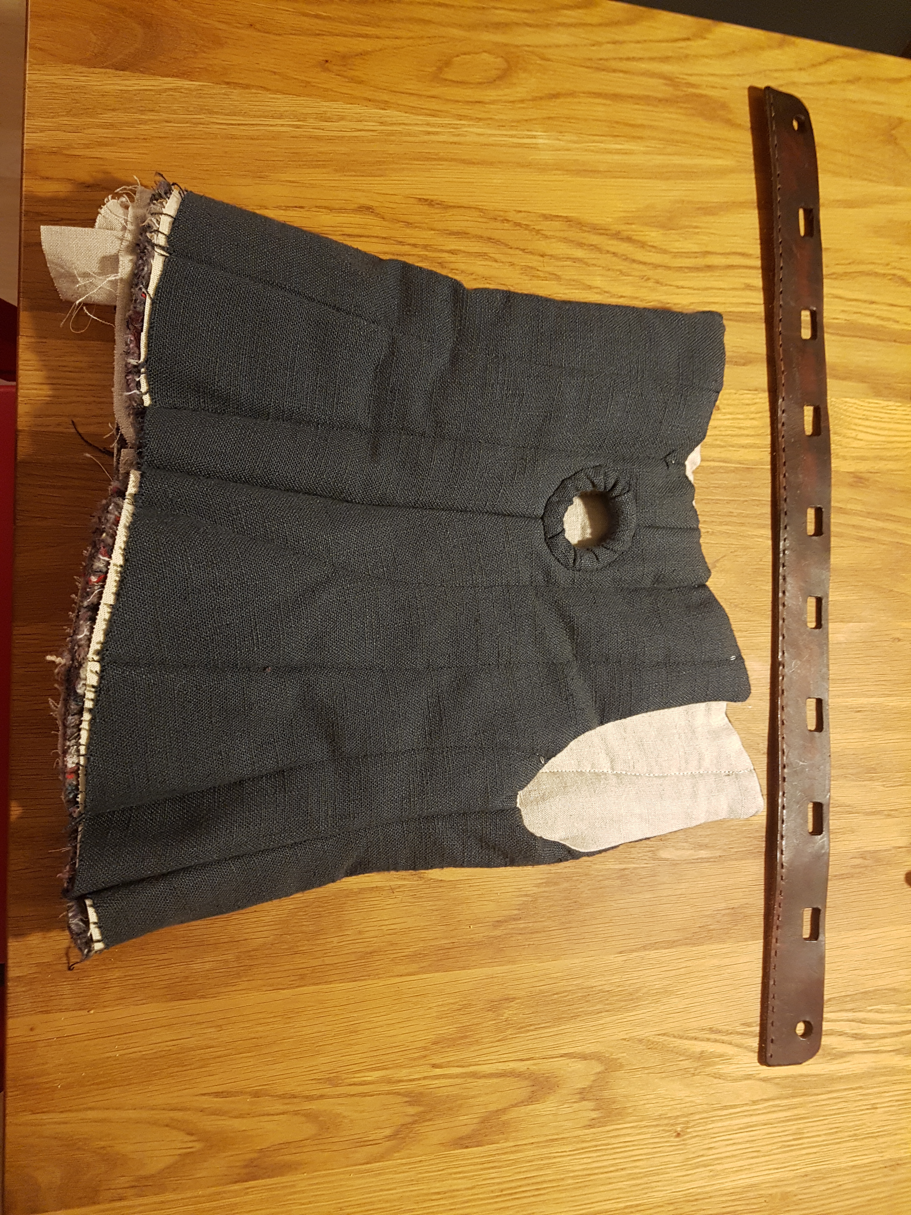 The finished padding will be attached to the aventail band sandwiching the chainmail in between.