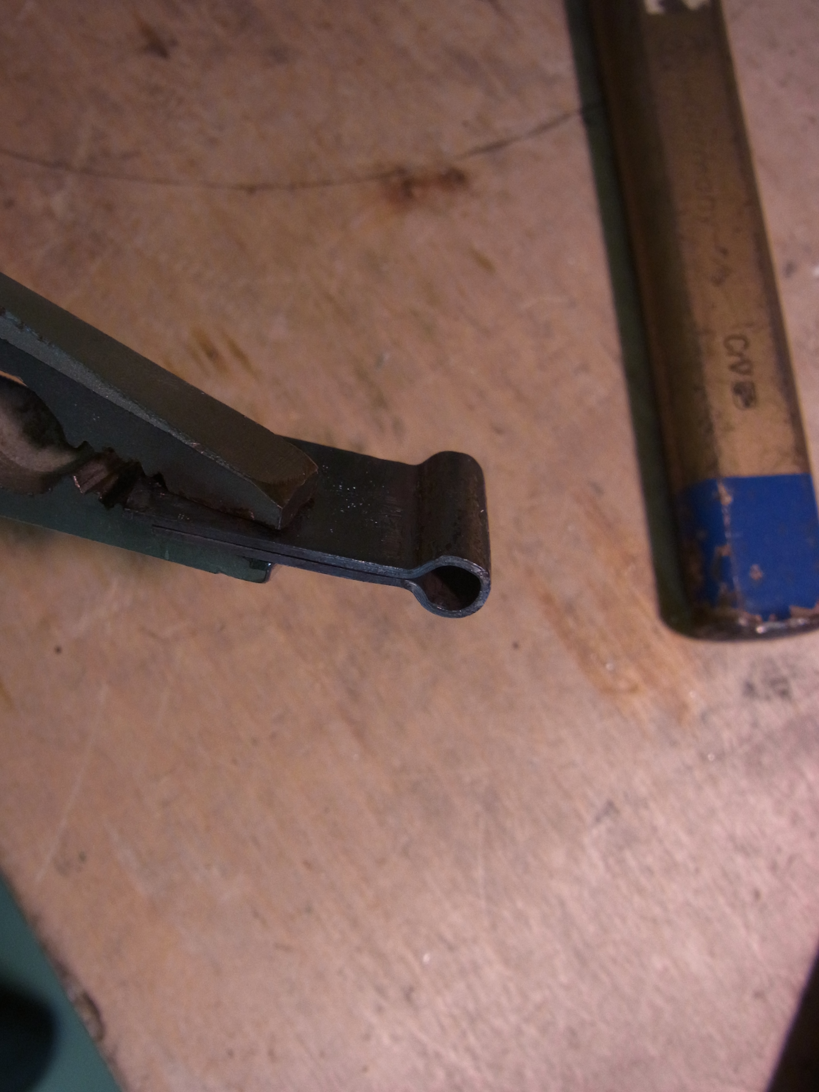 Und die endgültige Form bekommt die Zunge über einem Scharnierwerkzeug (oder einem passenden Nagel) und im Schraubstock.