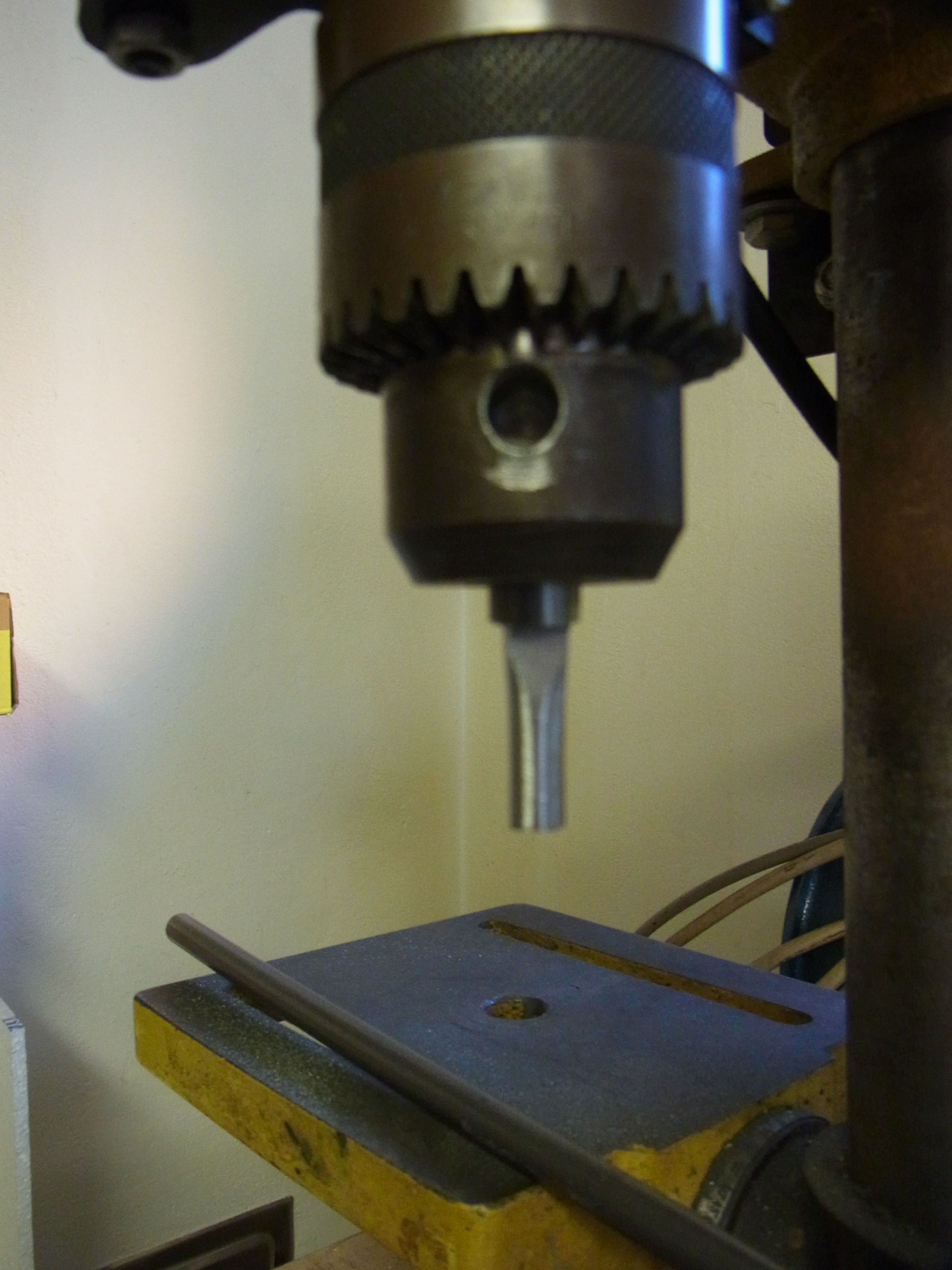 Hier noch ein Zwischenstand auf der Bohrmaschine. Nach dem die Form gepasst hat habe ich auch in der Bohrmaschine alles mit Schleifpapier versäubert.