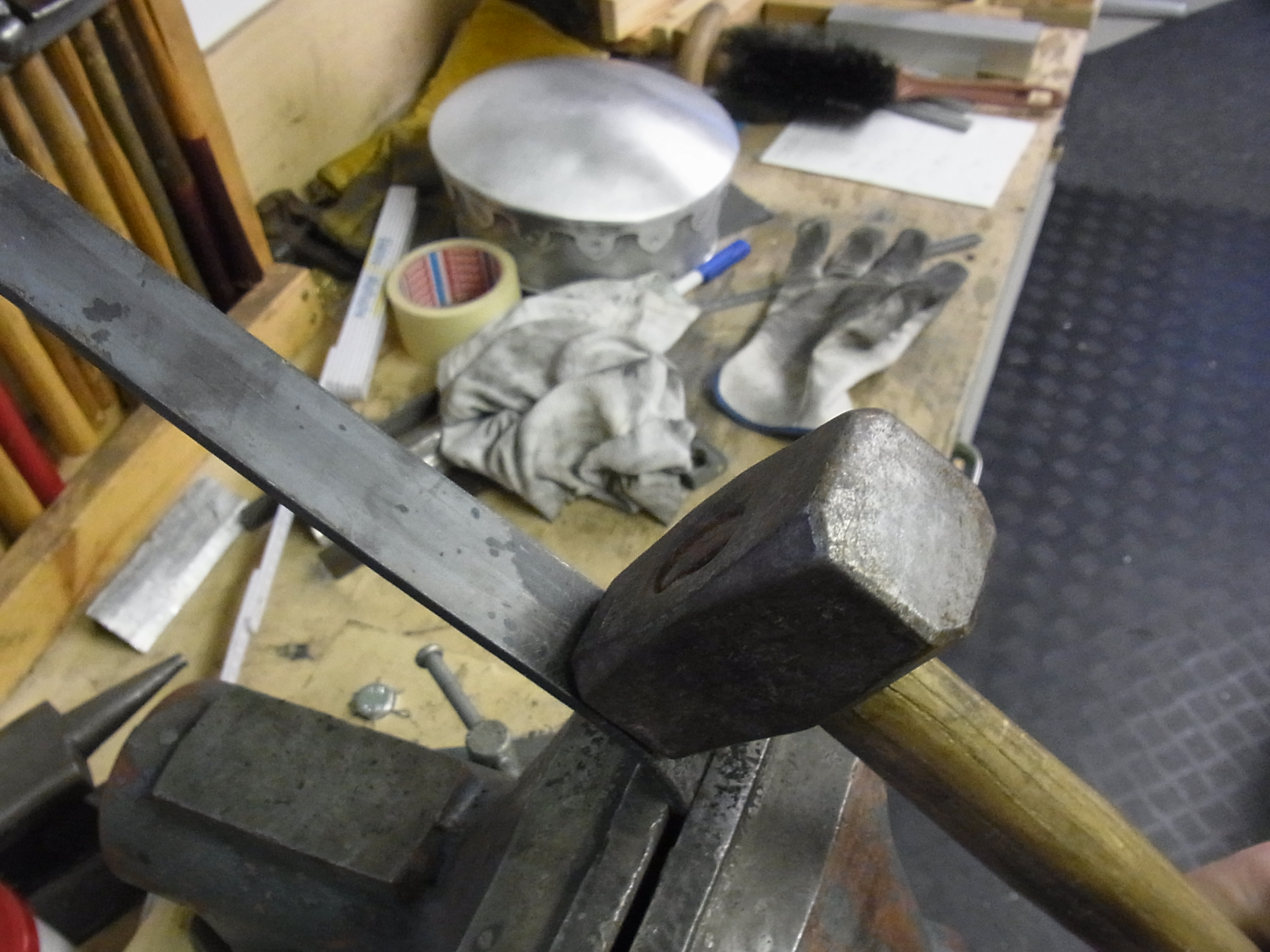 Die erste Biegung erfolgt von Hand damit es schonmal in die richtige Richtung geht und man den Hammer einsetzen kann.