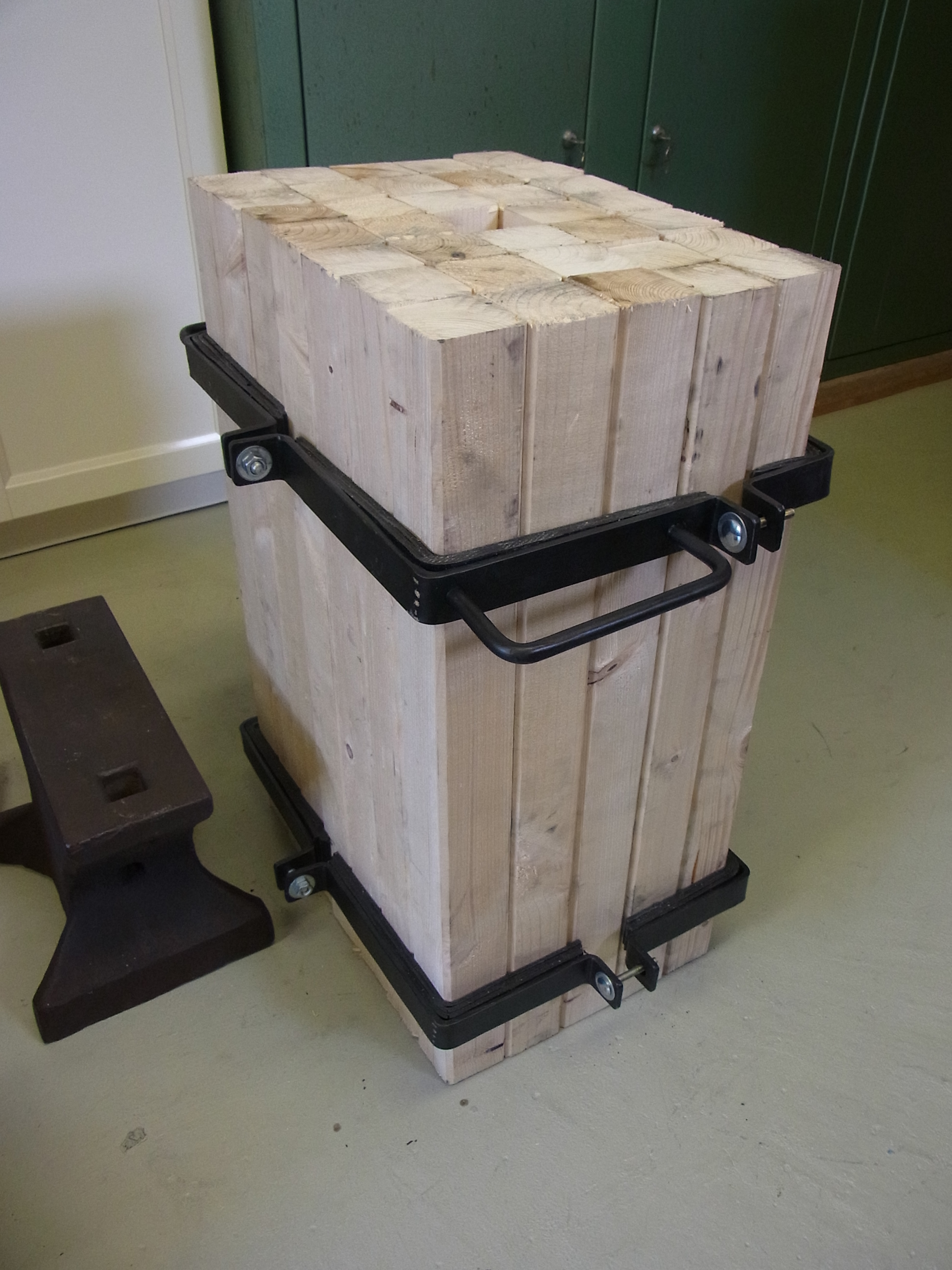 Für diesen Amboss möchte ich einen neuen Ambossunterstand bauen. Dabei habe ich mich für eine Bauform aus einzelnen Vierkanthölzern entschieden die von Fesseln aus Flachstahl zusammen gehalten werden. Das ist mit einfachen Handwerkzeugen machbar.
