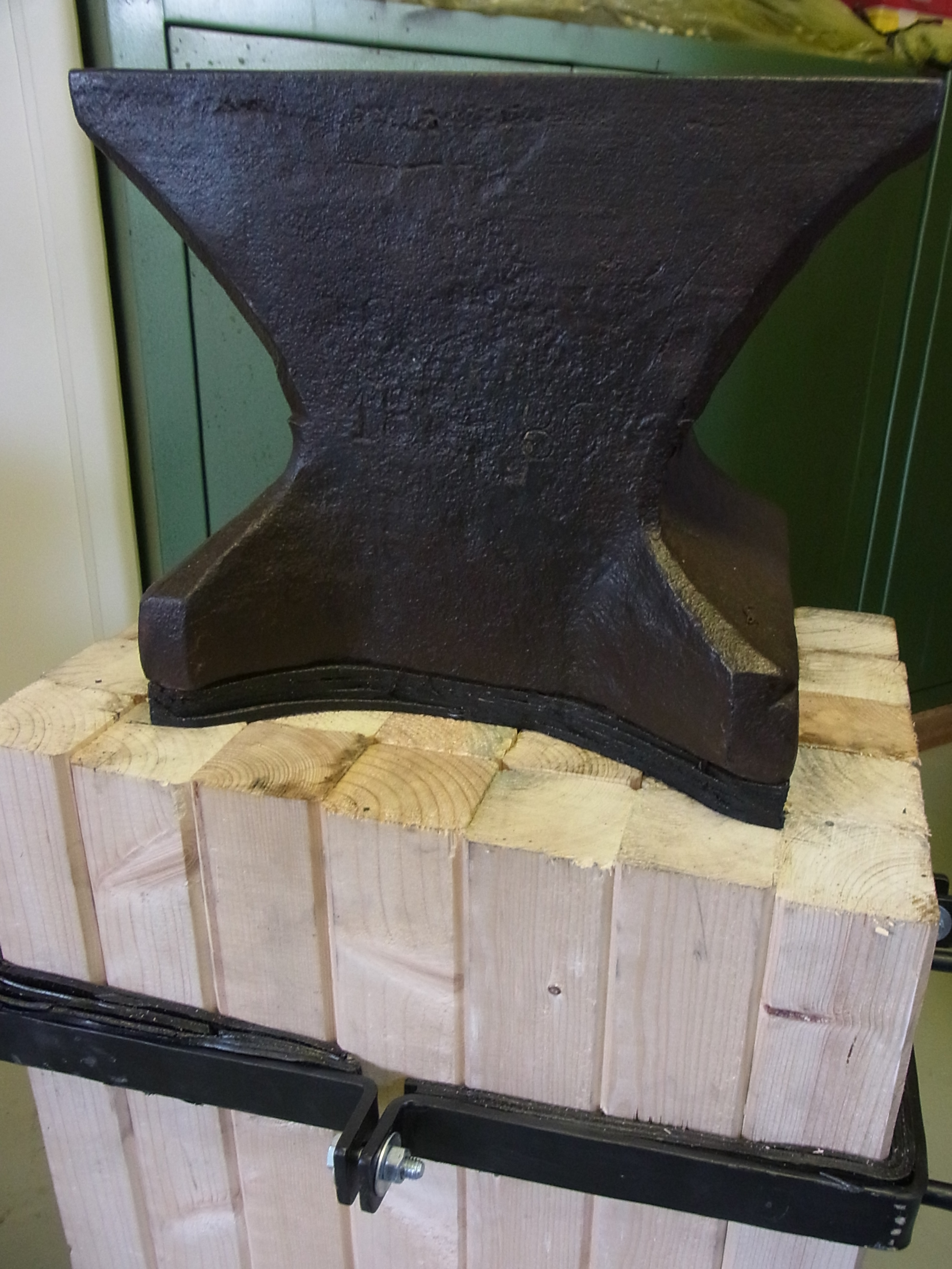 Den Amboss unterlege ich mit 12mm Bitumenpappe als Dämpfung.