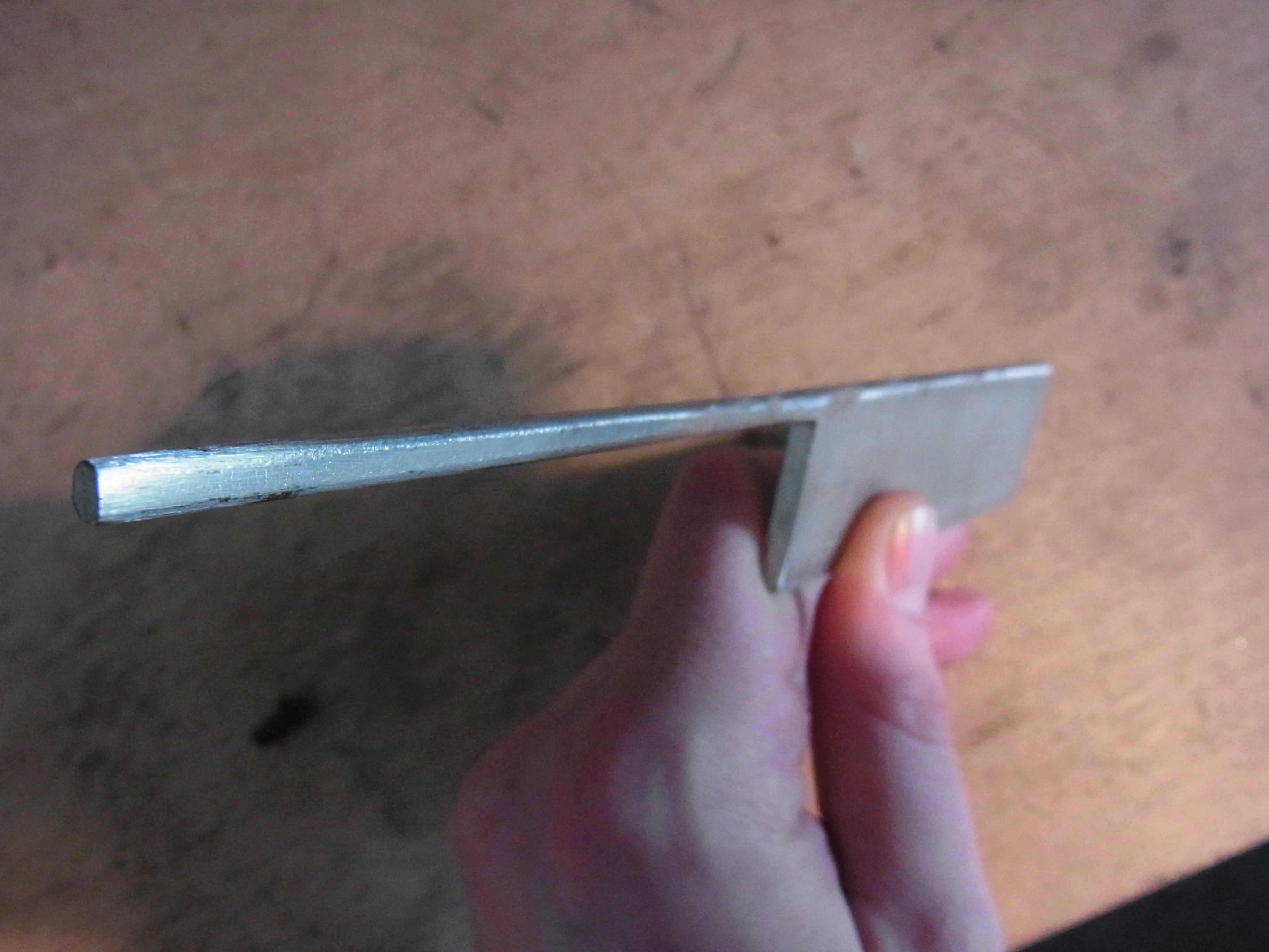 Das Scharnierwerkzeug nutze ich für Scharniere und Schnallenbleche. Es besteht aus Niro-Stahl (nur weil ich keine rostigen Werkzeuge mag). Das ganze wird aus einem Flachstahl ausgesägt (stärke des Flachstahls entspricht dem Innendurchmesser des Scharniers).