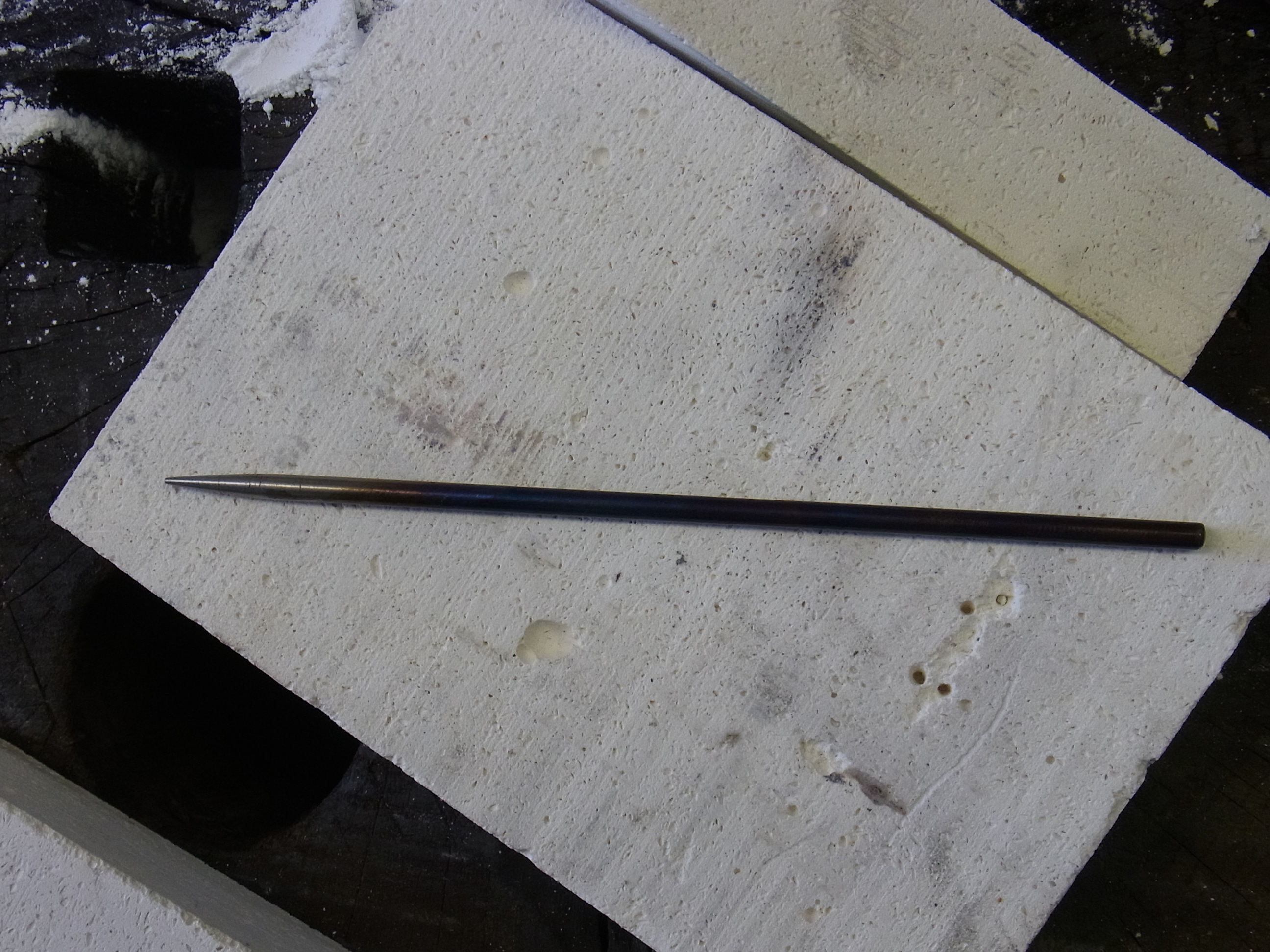 Dieser Dorn ist aus Silberstahl (1.2211) D4mmx200mm. Die Spitze habe ich an der Bohrmaschine mit Schleifpapier geschliefen. Der Dorn ist Vergütet.