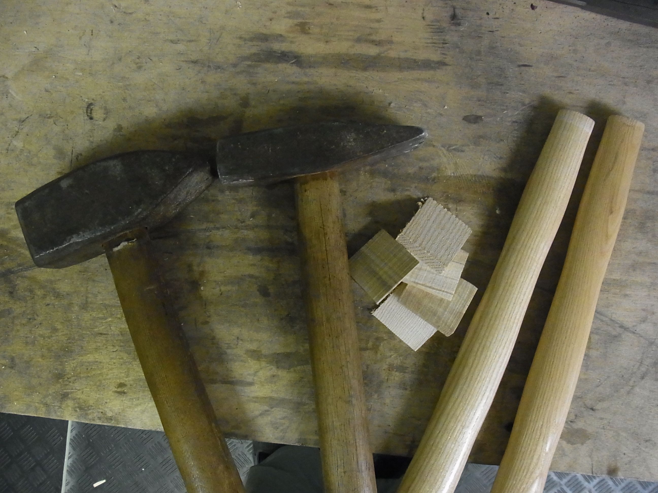 Was braucht man: Den Hammerkopf oder alten Hammer, einen neuen Stiel und Material zum Verkeilen.