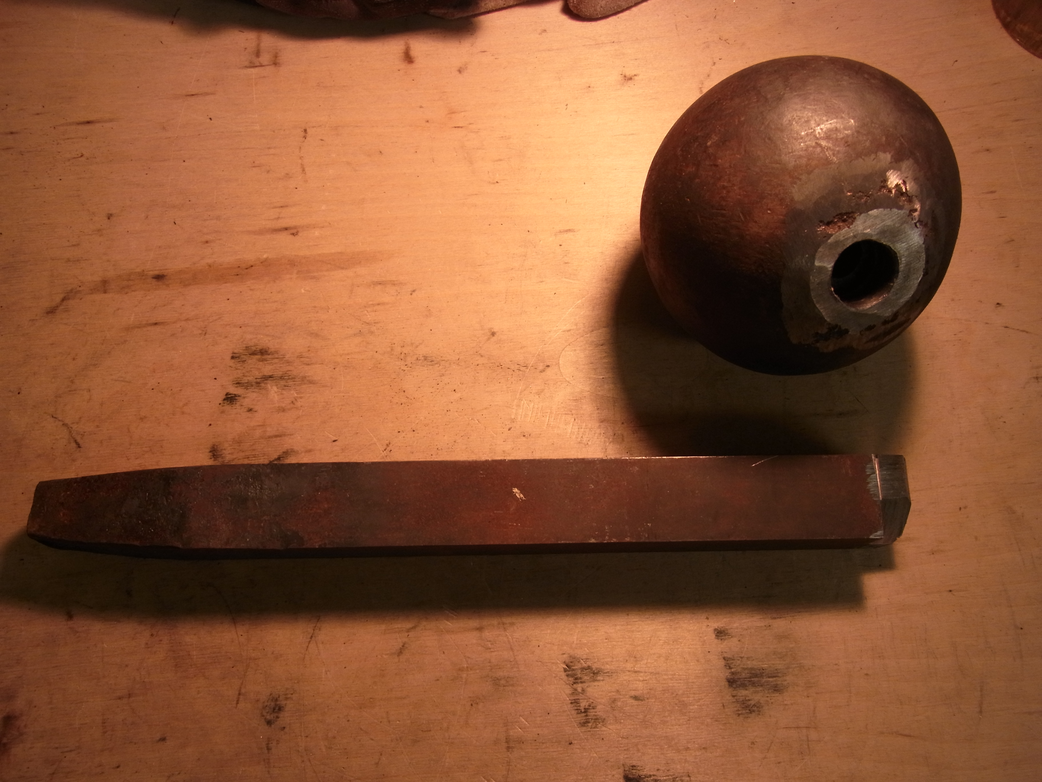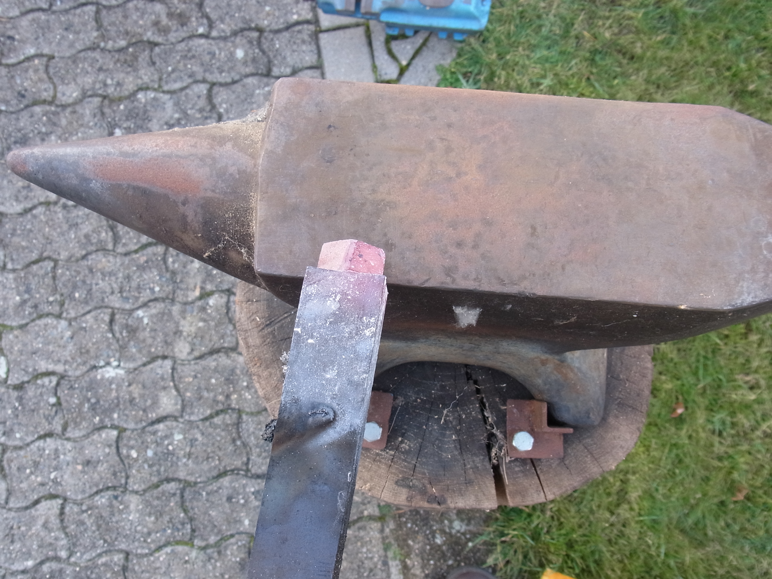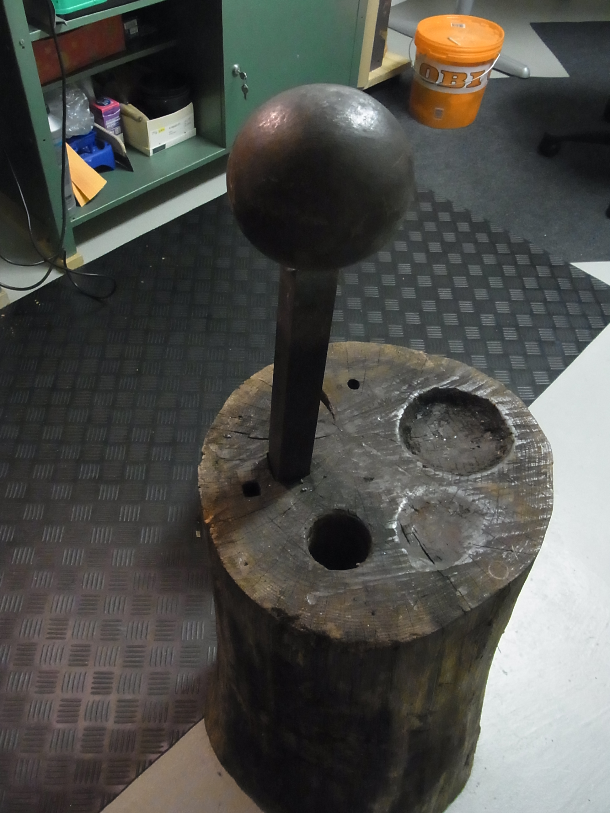 Mein großer Kugelsteckamboss ist mein Sorgenkind. Er besteht aus einer Gewichtstoßerkugel und einem 35x35mm Stahl.