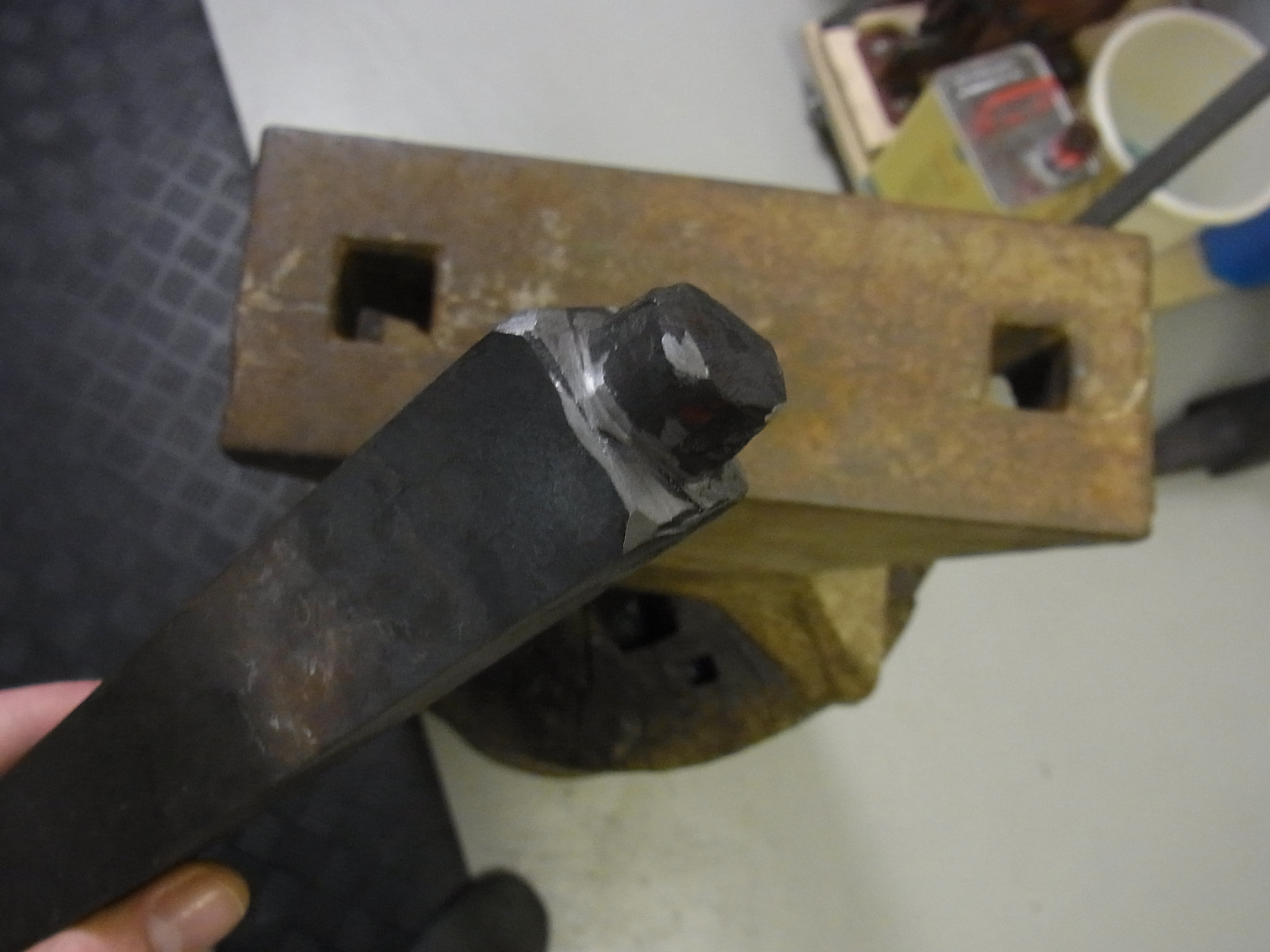 Der untere ist die “alte Version”. Er besteht aus einem kleinen Steckamboss (bei ebay für kleines Geld ersteickert). Diesen habe ich auf einen 12x12mm Stahl aufgeschweißt.